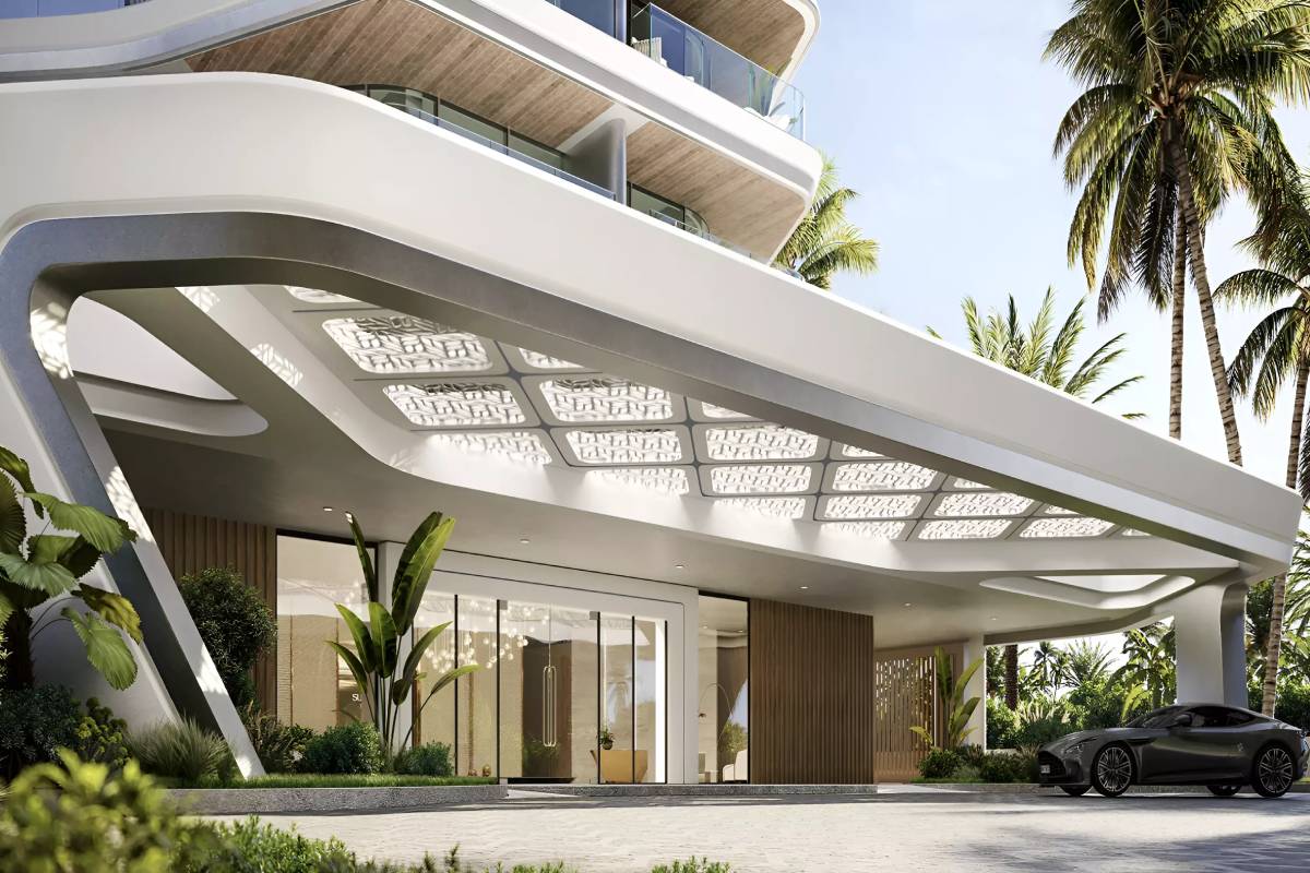 Sunshine Bay is an exquisite 12-storey residential development by Source of Fate Properties, positioned on the central islet of Al Marjan Island, Ras Al Khaimah. The building’s striking architecture is inspired by the graceful silhouette of a sailboat, showcasing undulating balconies that mimic the ripple of catamaran sails. This particular boutique development comprises 240 luxury residences, including studios, 1, and 2-bedroom apartments, as well as the exclusive “Bay Collection” featuring ground-floor units with private pools.