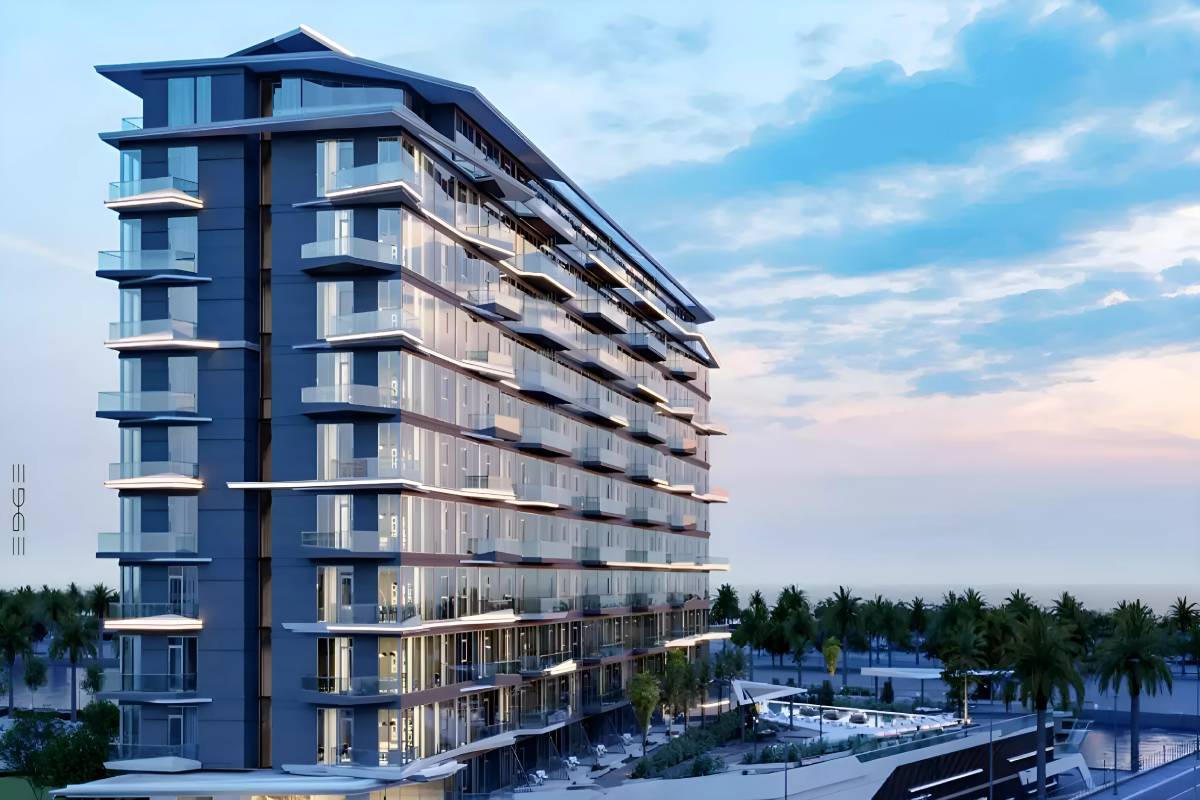 EDGE is a premier residential development on the latest unveiled Raha Island within the Mina Al Arab masterplan, developed by RAK Properties. This particular architectural masterpiece showcases a striking “yacht-inspired” silhouette with bold, angular balconies that cascade outwards, mirroring the grace of a luxury vessel. Rising above two podium levels that house ten exclusive lagoon-facing chalets, the tower consists of ten floors of high-end apartments and is crowned by two bespoke 2-bedroom penthouses on the 11th floor.