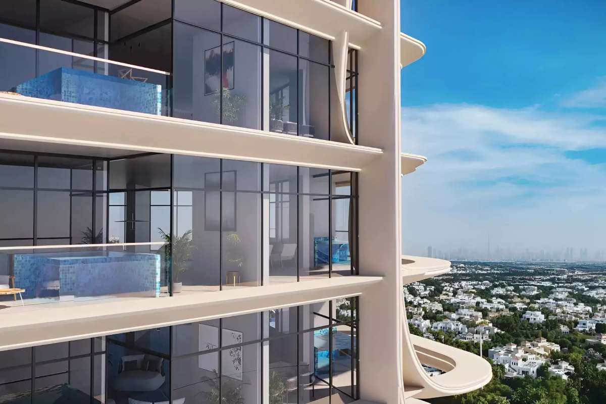 The project blends modern design, elegant architecture, and resort-style living in one of Dubai’s most sought-after districts. Floor-to-ceiling windows, sculpted terraces, plus panoramic views of the city and Al Barari greenery provide a luxurious and tranquil living experience.