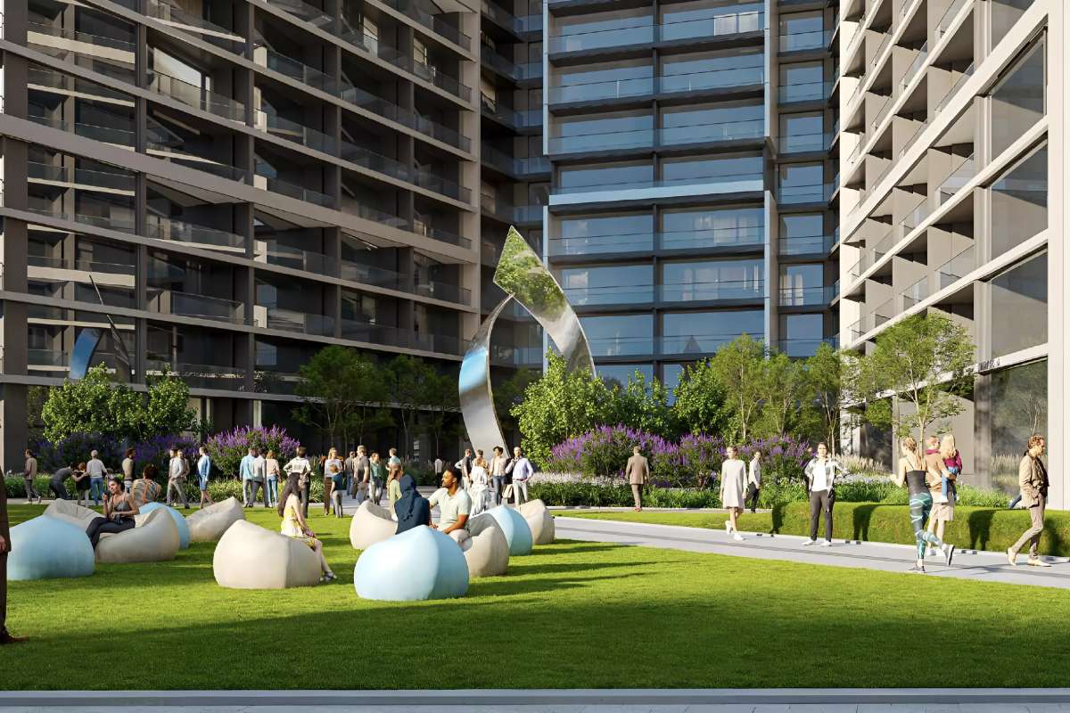 Residents tend to enjoy immediate access to Dubai Marina, Downtown Dubai, DIFC, and both Dubai International Airport and the future Al Maktoum International Airport. The project focuses on modern design, fluid circulation, and integrated amenities, creating a self-sufficient urban ecosystem with retail, office spaces, plus recreational facilities including outdoor cinema lawns, amphitheatre-style community areas, and family play zones.